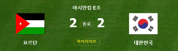 ○ 1/20(토) 대한민국 VS 요르단 (오후 8:30분) ----- (종료) 2:2 무승부