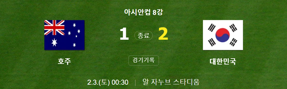 대한민국 축구 대표팀은 3일 오전 0시 30분(한국시간) 알 자누브 스타디움에서 치러진 호주와의 2023 아시아축구연맹(AFC) 아시안컵 8강전에서 승리하면서 4강 진출을 하였습니다.