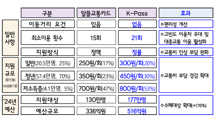 기존 알뜰교통카드에서 불편했던 점을 보완하여 K-Pass 카드가 출시될 예정입니다.